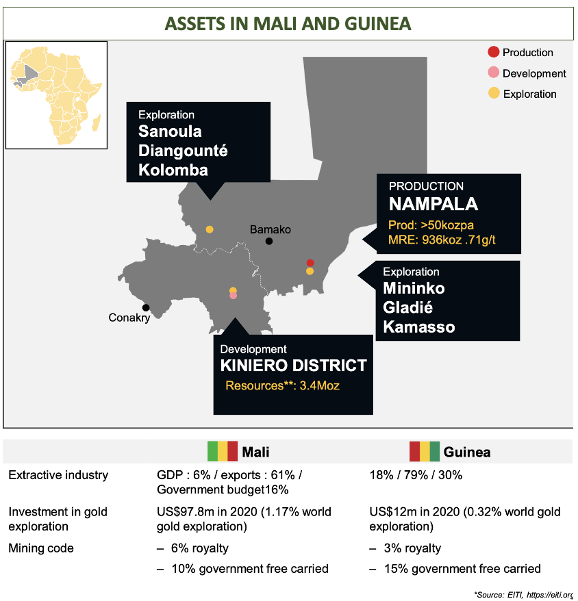 Post merger, we will own and operate the Nampala mine in South Mali, Africa's third most important gold-producing country. We are currently processing very low-grade saprolite (0.8 g/t) and produce more than 51,000 ounces of gold with a target AISC of 900-1000/oz.